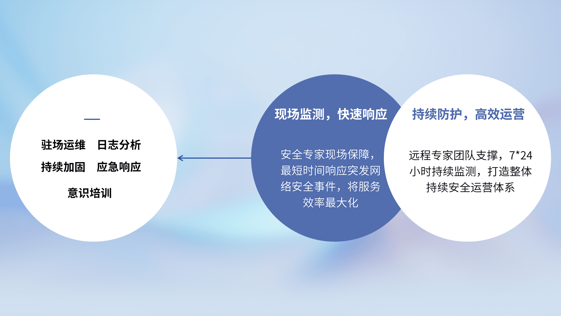 针对客户行业特性,,,,提供专属的一站式安全管理服务,,帮助客户全面感知网络空间威胁,,,,通过安全专家的线上、、、线下防护支持,,实现风险闭环,,,,将安全保障常态化,,为客户打造常态化安全运维运营服务。。